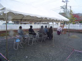 11日に地鎮祭がありました。 小雨の降る中になってしまいましたが、無事に式は終わりました。
