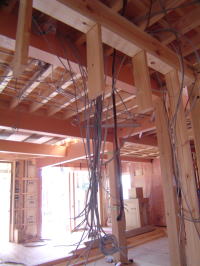 内部の造作も順調に進んでいます。 分電盤廻りは配線が集中します。クラゲみたい??