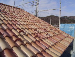 屋根の洋瓦を葺き始めました。 カワイイ感じの落ち着いた色を選びました。