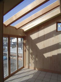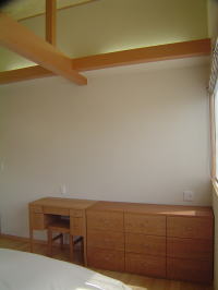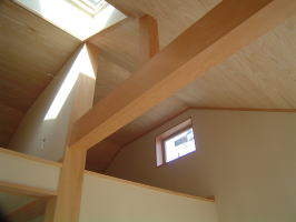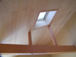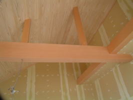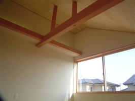 天井の仕上げです。 無垢の杉板で、白太の無節です。 上品な感じに納まっています。