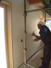 塗り壁の検査に行ってきました。 仕上げの状況、パターンの確認などをしてきました。 なかなか、良い感じです。左官屋さんよろしくです。